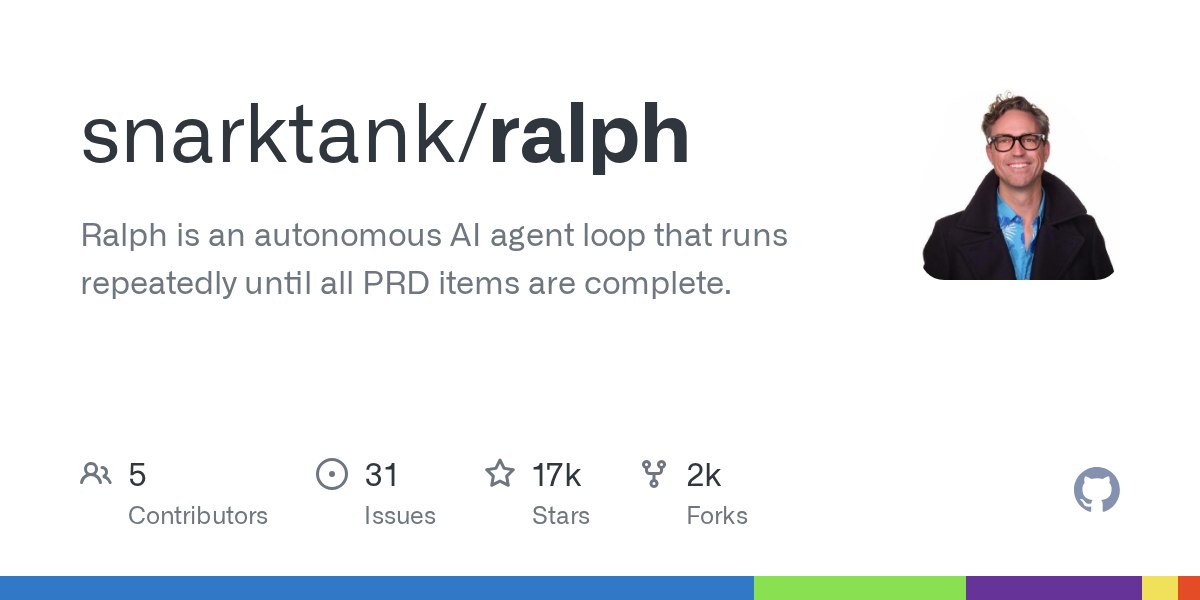 Ralph is a 113-line shell script agent loop using Claude prompts. Use /prd to generate PRDs and /ralph to create task plans with validation checkpoints.